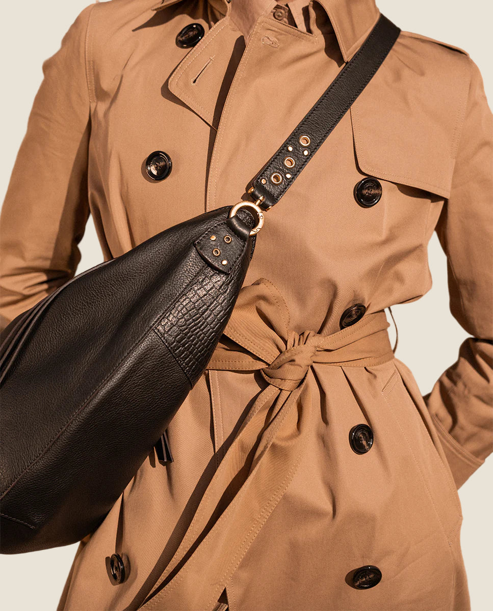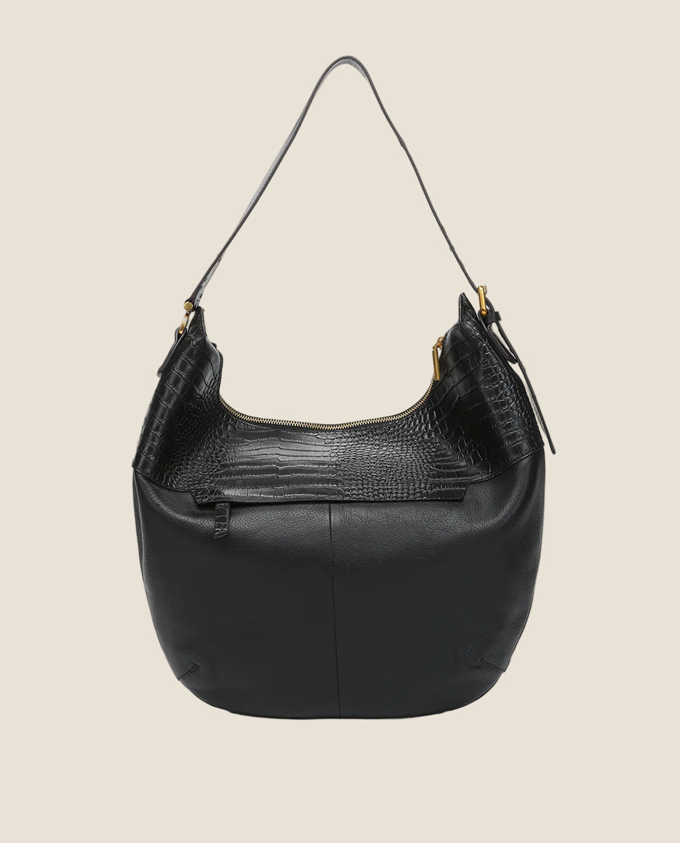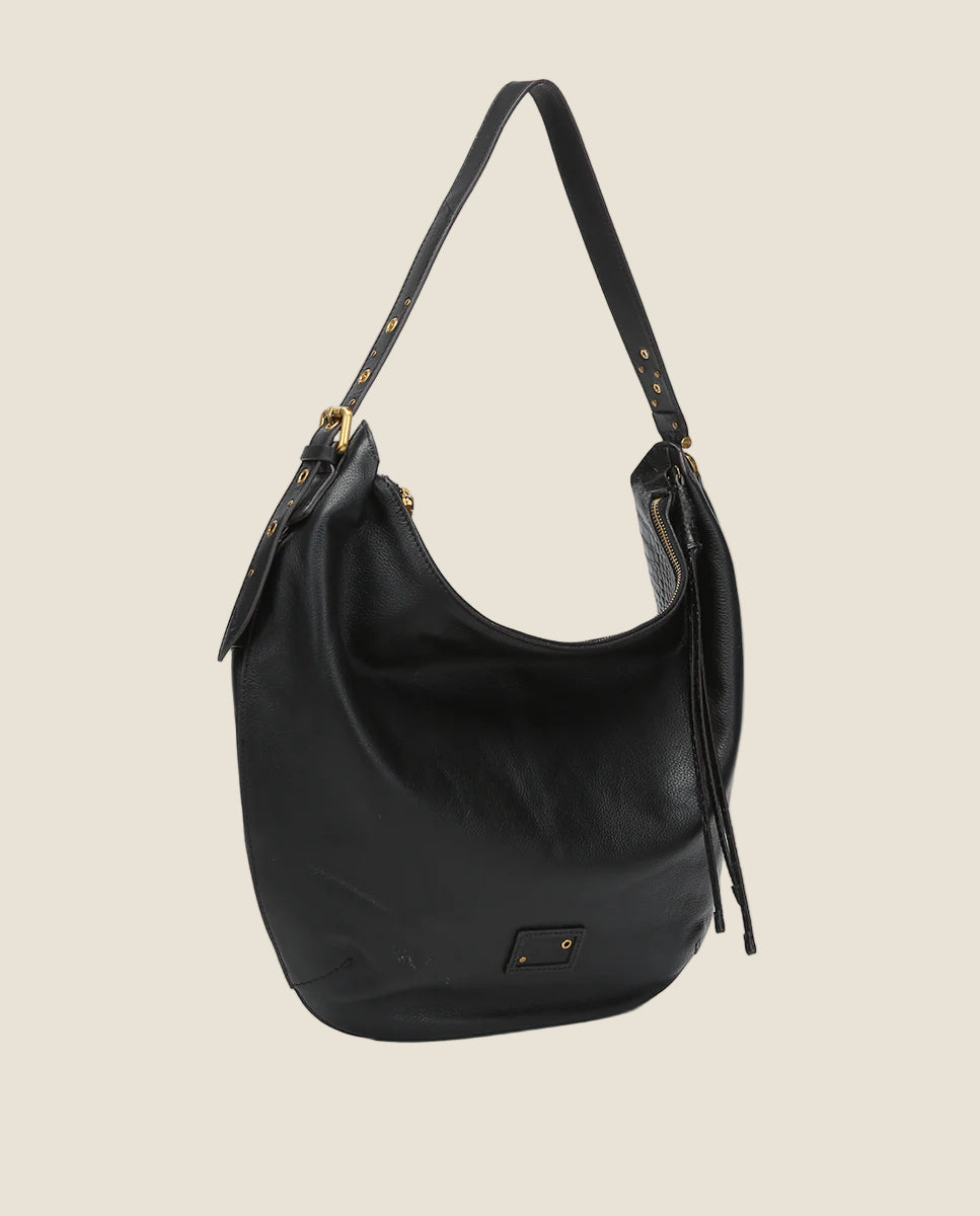 Borsa a tracolla in stile hobo realizzata in pregiata pelle di bovina. Leggera, pratica e dal design senza tempo, è l’accessorio ideale per accompagnare ogni look quotidiano. Dotata di chiusura magnetica, interno organizzato e logo Abbacino inciso sul davanti per un tocco distintivo.Prezzo normale