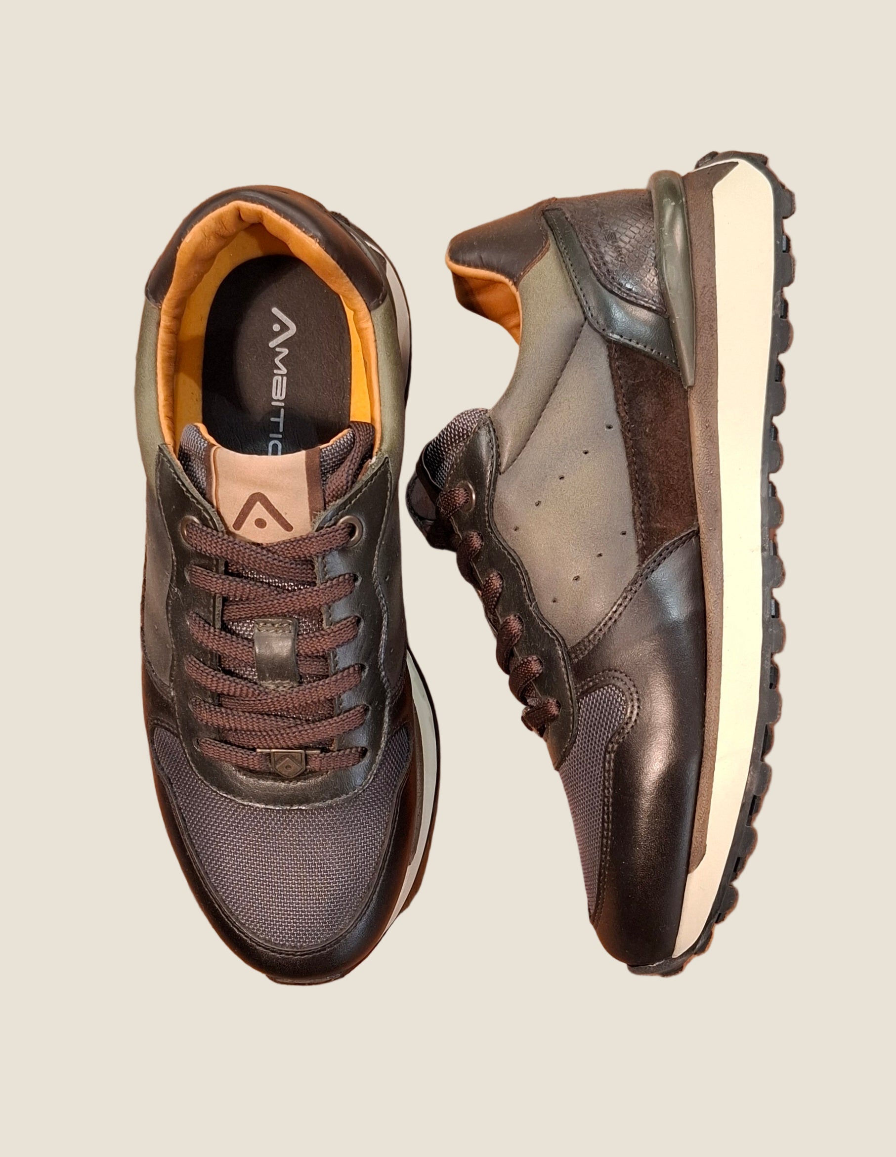 Sneaker in pelle e tessuto tecnico tipo runner con suola Evo.Prezzo normale