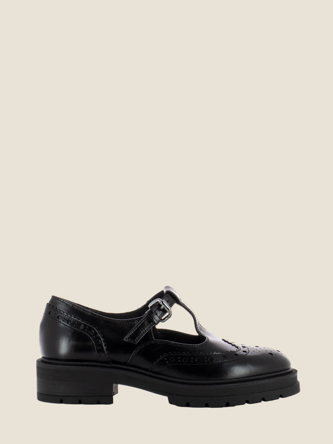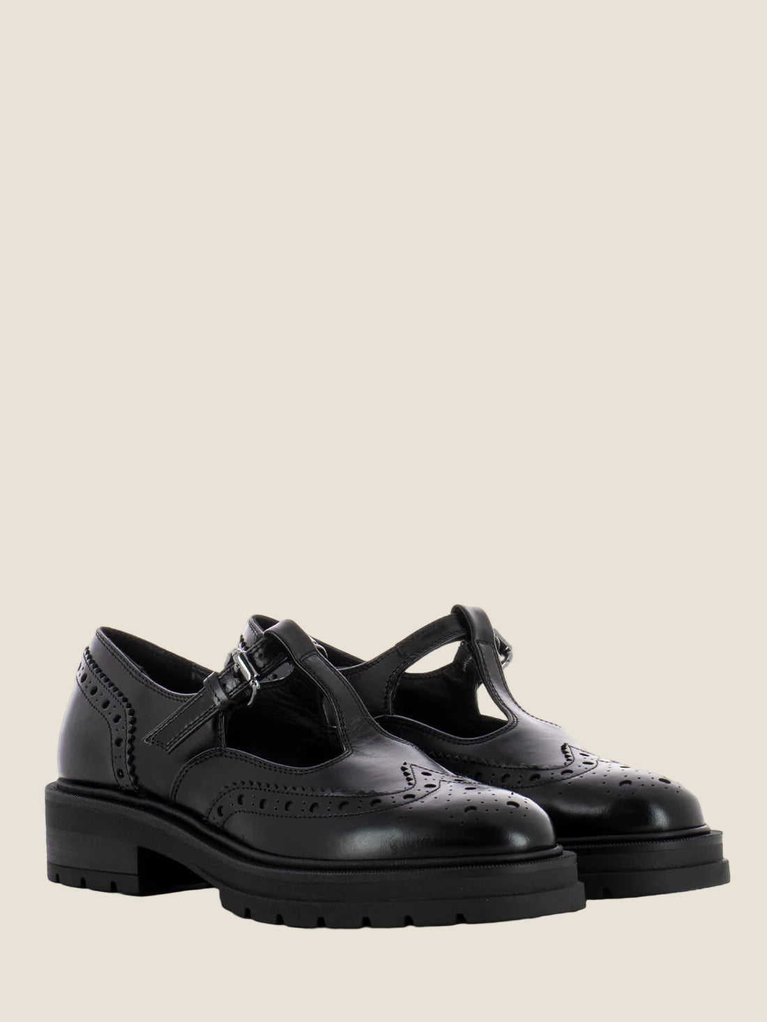 Derby Stimm Tomaia in pelle con decorazioni a coda di rondine. Interno in pelle, fondo in gomma.Prezzo normale