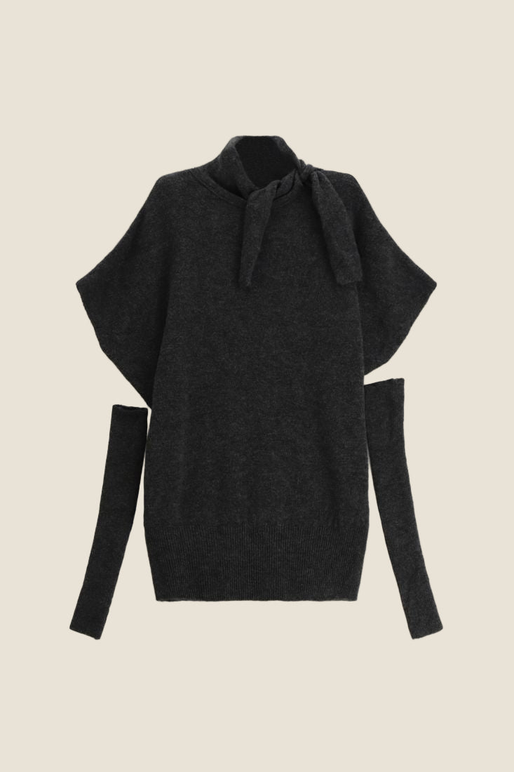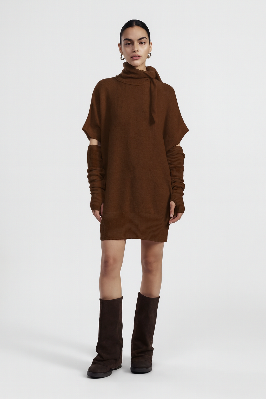 Abito corto dall’effetto avvolgente con collo alto annodabile, maniche corte e polsini lunghi removibili. Un capo versatile e ideale per look originali da abbinare a stivali e accessori luminosi.Prezzo normale