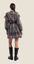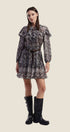 Abito corto in viscosa con stampa originale, scollo a V e maniche lunghe. Vestibilità fluida e comoda, perfetto per un look femminile e unico.Prezzo normale