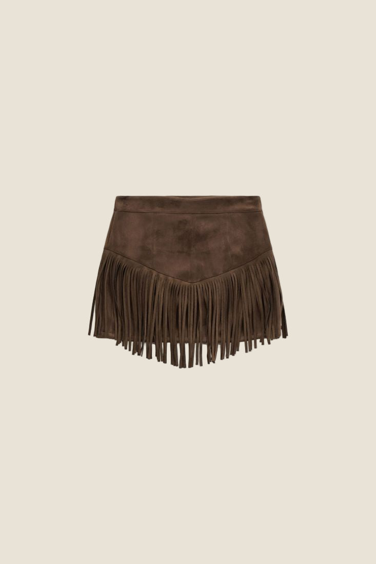 Dixie Gonna corta con frange e vita alta