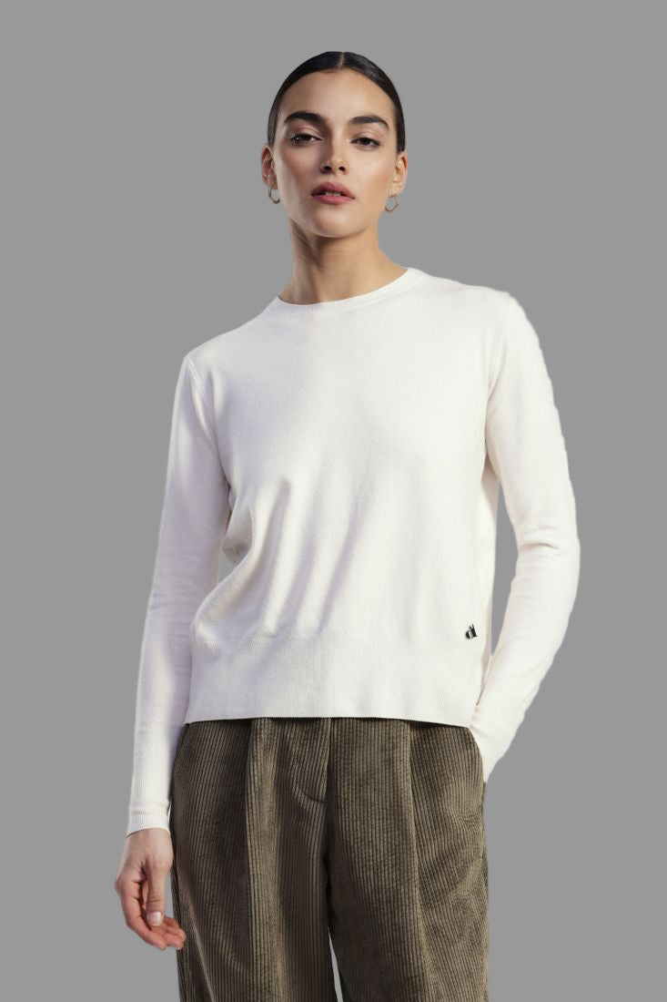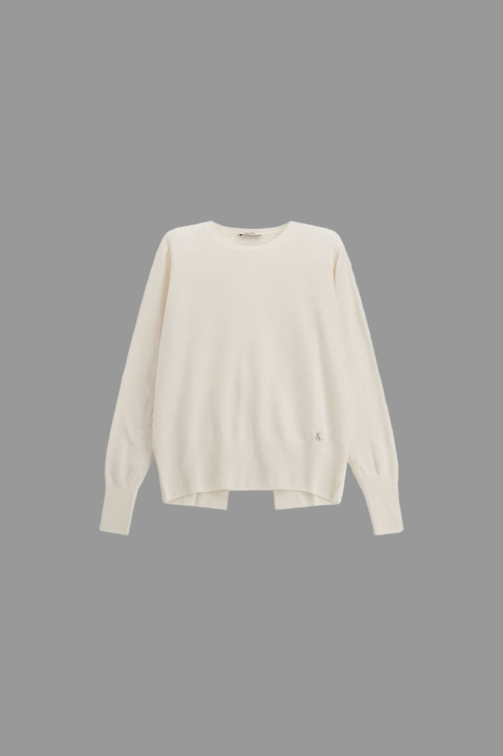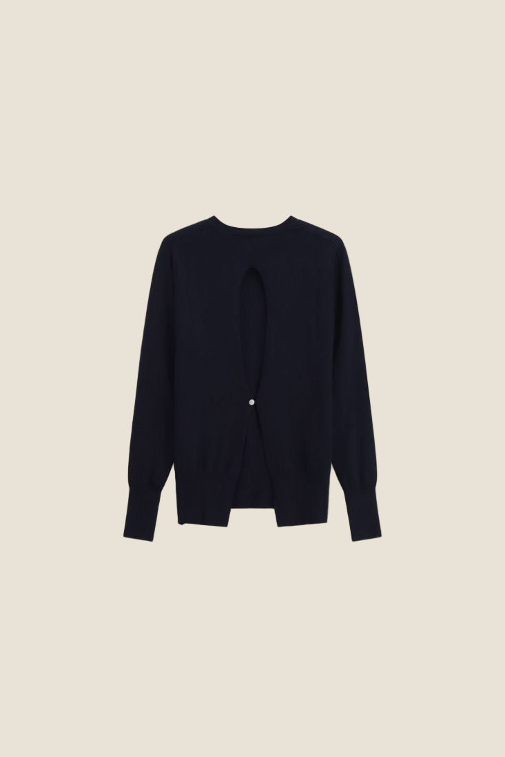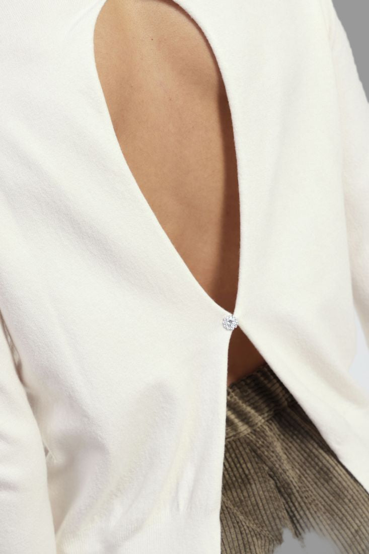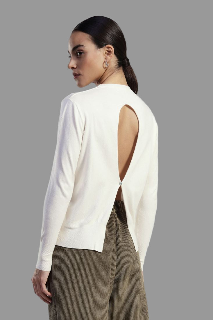 Maglione dal design essenziale sul davanti e sorprendente apertura sul retro. Con girocollo classico e maniche lunghe, è perfetto per look rilassati o più curati.Prezzo normale