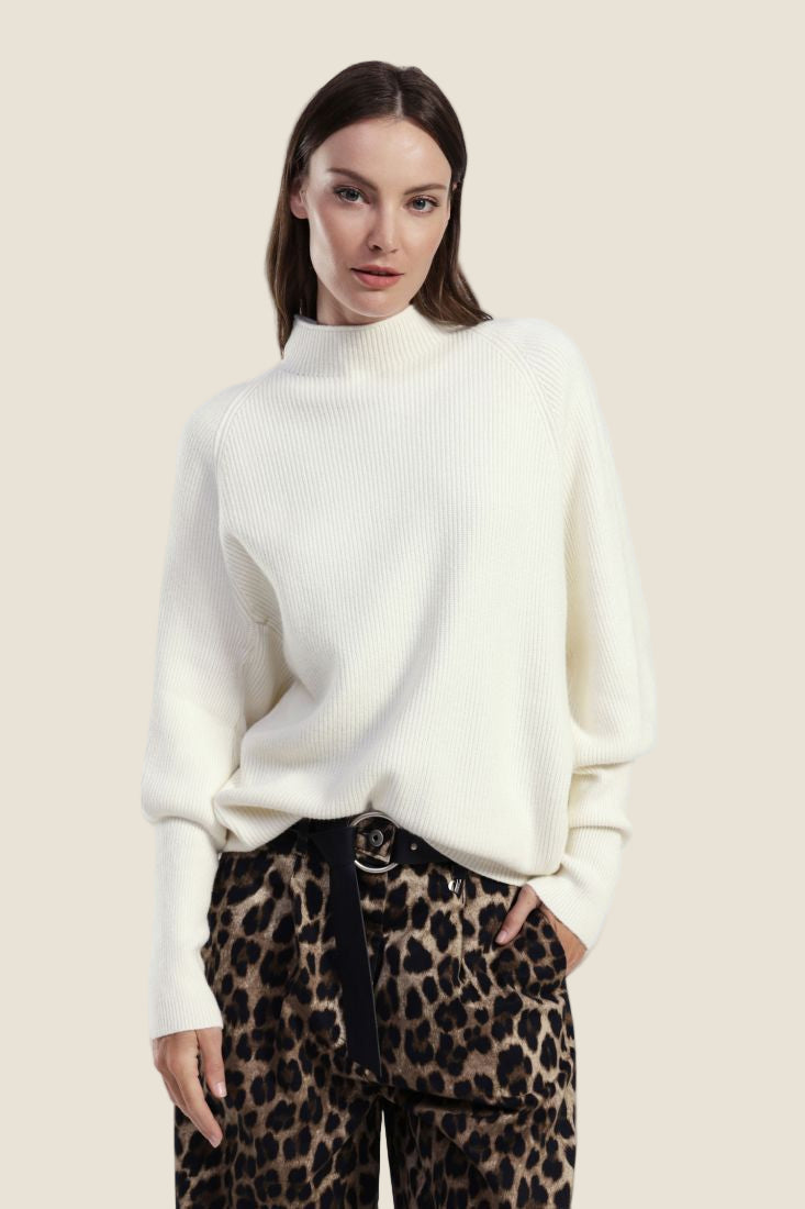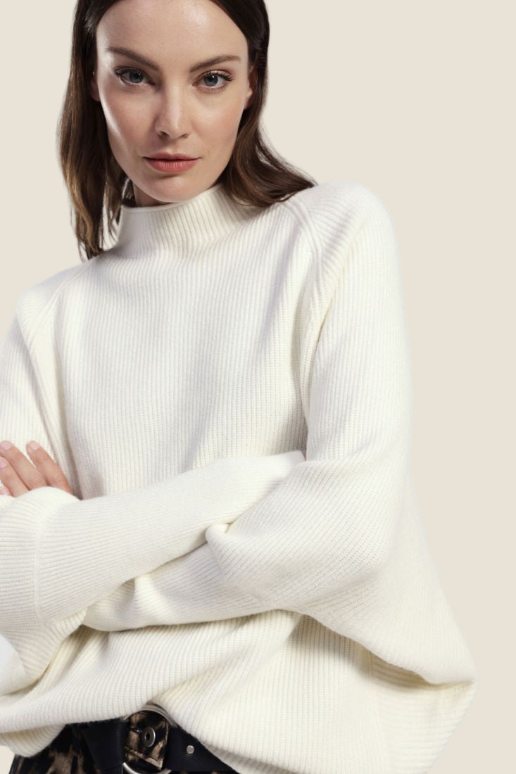 Maglione a collo alto dalla linea ampia e femminile. Il design essenziale e la tinta unita lo rendono un capo versatile e raffinato, perfetto per completare con stile ogni look quotidiano.Prezzo normale