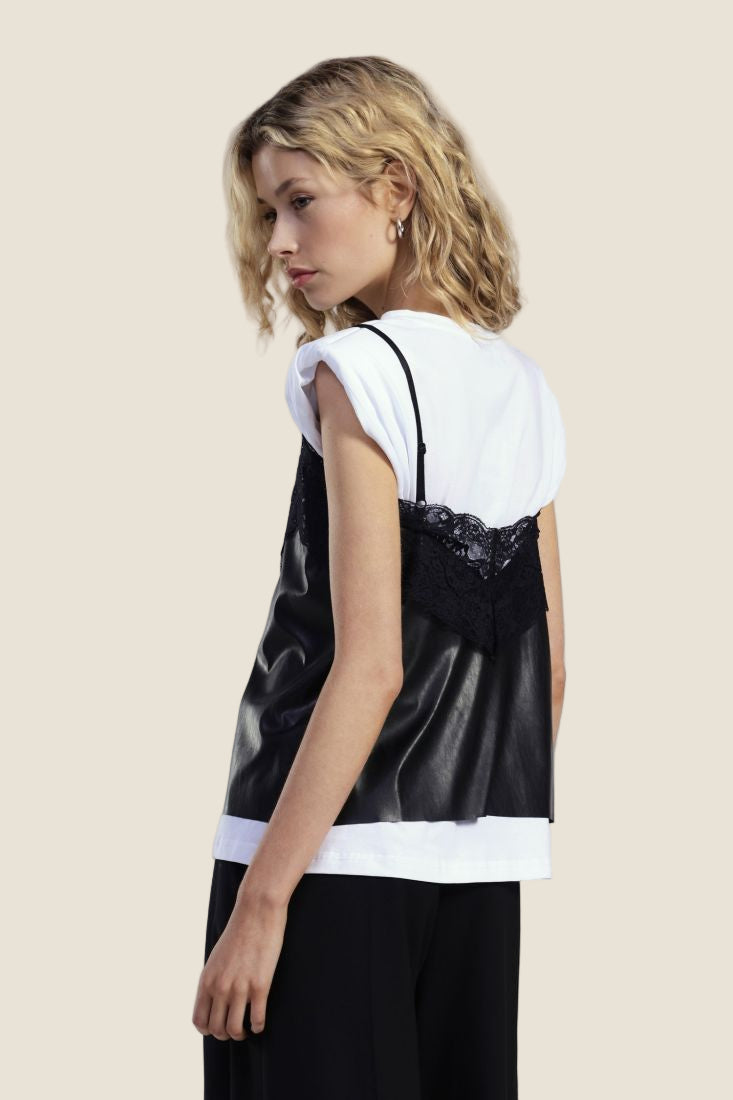 Dixie Top con dettagli a contrasto e pizzo sul davanti