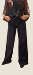 Jeans a gamba larga in denim scuro con vita alta e chiusura frontale con bottone e zip. Il taglio dritto e ampio valorizza la silhouette offrendo comfort e libertà di movimento. Perfetti per look casual o più eleganti.Prezzo normale