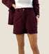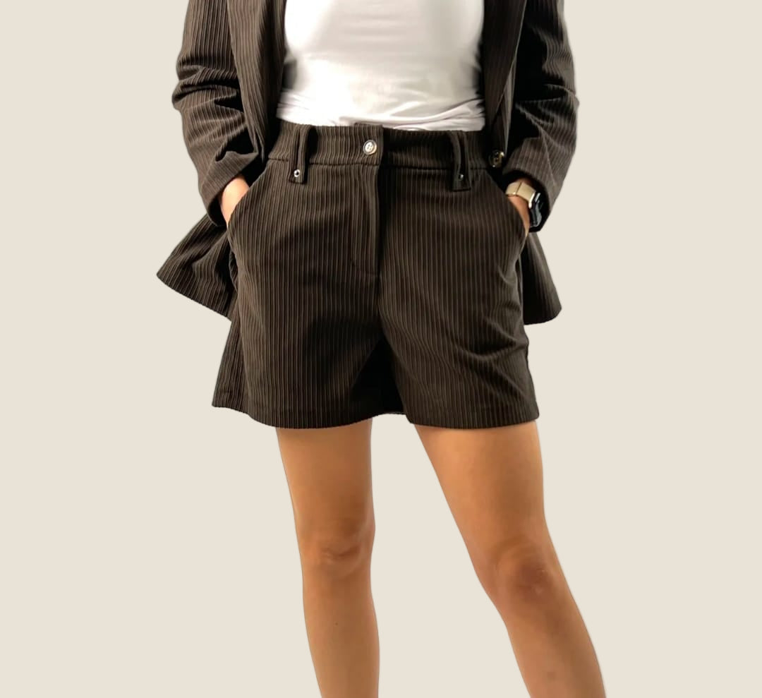 Short in tessuto a coste 100% poliestere, leggeri e confortevoli. Linea morbida, vita media con bottone e zip, tasche laterali e motivo a righe verticali.Prezzo normale