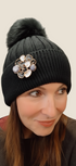 Cuffia donna con pon pon in vera pelliccia staccabile e spilla smaltata removibile. Morbida, calda e raffinata. Perfetta per completare il look con un tocco unico.Prezzo normale