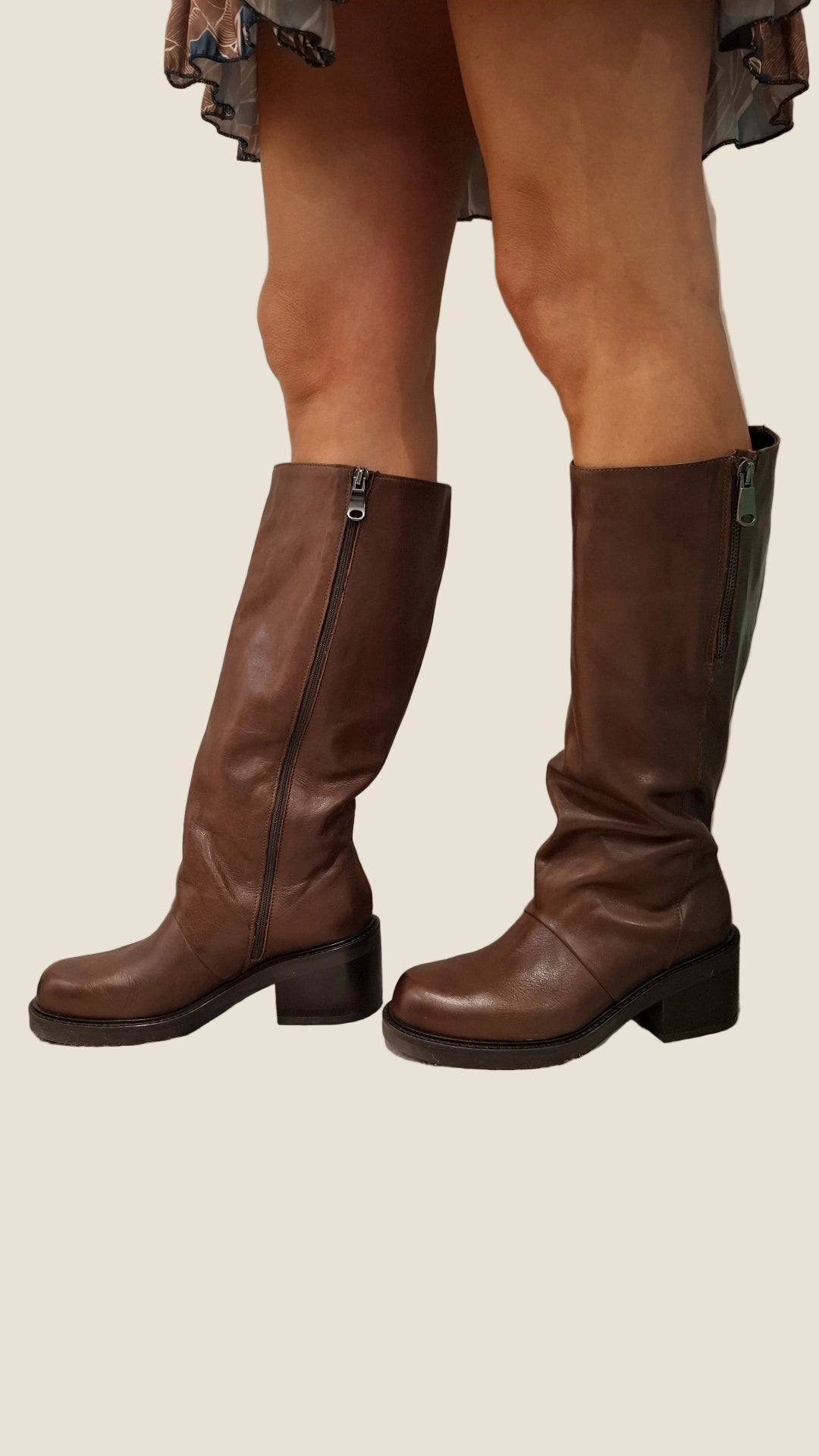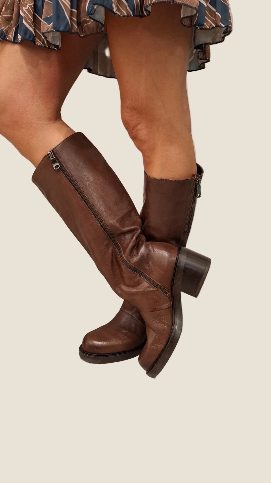 Stivale da donna in vera pelle di alta qualità, morbido e resistente. Dotato di pratica cerniera laterale, suola in gomma antiscivolo e tacco largo e stabile per garantire comfort e stile in ogni occasione. Perfetto per look casual o più eleganti.Prezzo normale