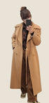 Cappotto lungo da donna a doppio petto con collo a rever e cintura laterale fissa. Un capo elegante e senza tempo, perfetto per affrontare l’inverno con stile e raffinatezza.Prezzo normale