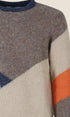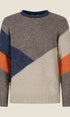 Maglione girocollo dal design contemporaneo con blocchi di colore e linee diagonali. Caldo, confortevole e versatile, perfetto per look casual e smart-casual nelle stagioni più fresche.Prezzo normale