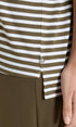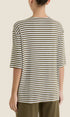Maglietta da donna a righe con girocollo e manica al gomito. Vestibilità boxy ampia e diritta per una silhouette moderna e rilassata. Realizzata in Viscosa Summer elasticizzata, è fresca, leggera e perfetta per tutta la giornata.Prezzo normale