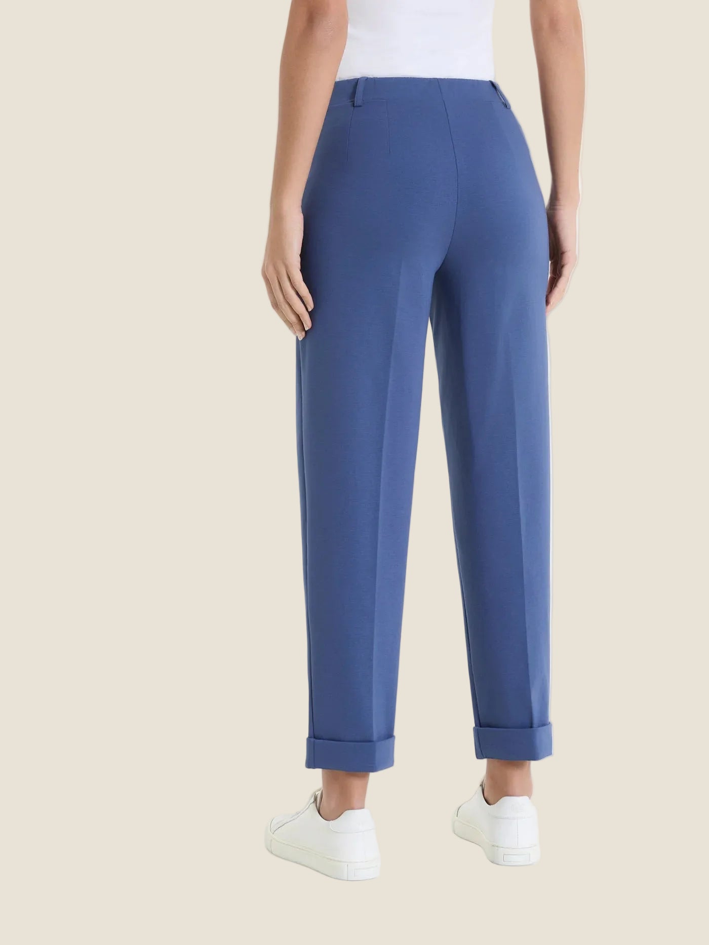 Pantalone a carota da donna con vestibilità tapered e lunghezza cropped alla caviglia. Realizzato in tessuto Compact Light, fresco, leggero ed elastico, garantisce comfort e libertà di movimento. Senza zip e senza bottoni, con tasche, passanti per cintura e risvolto regolabile per una vestibilità personalizzabile. Ideale per le giornate estive.Prezzo normale