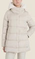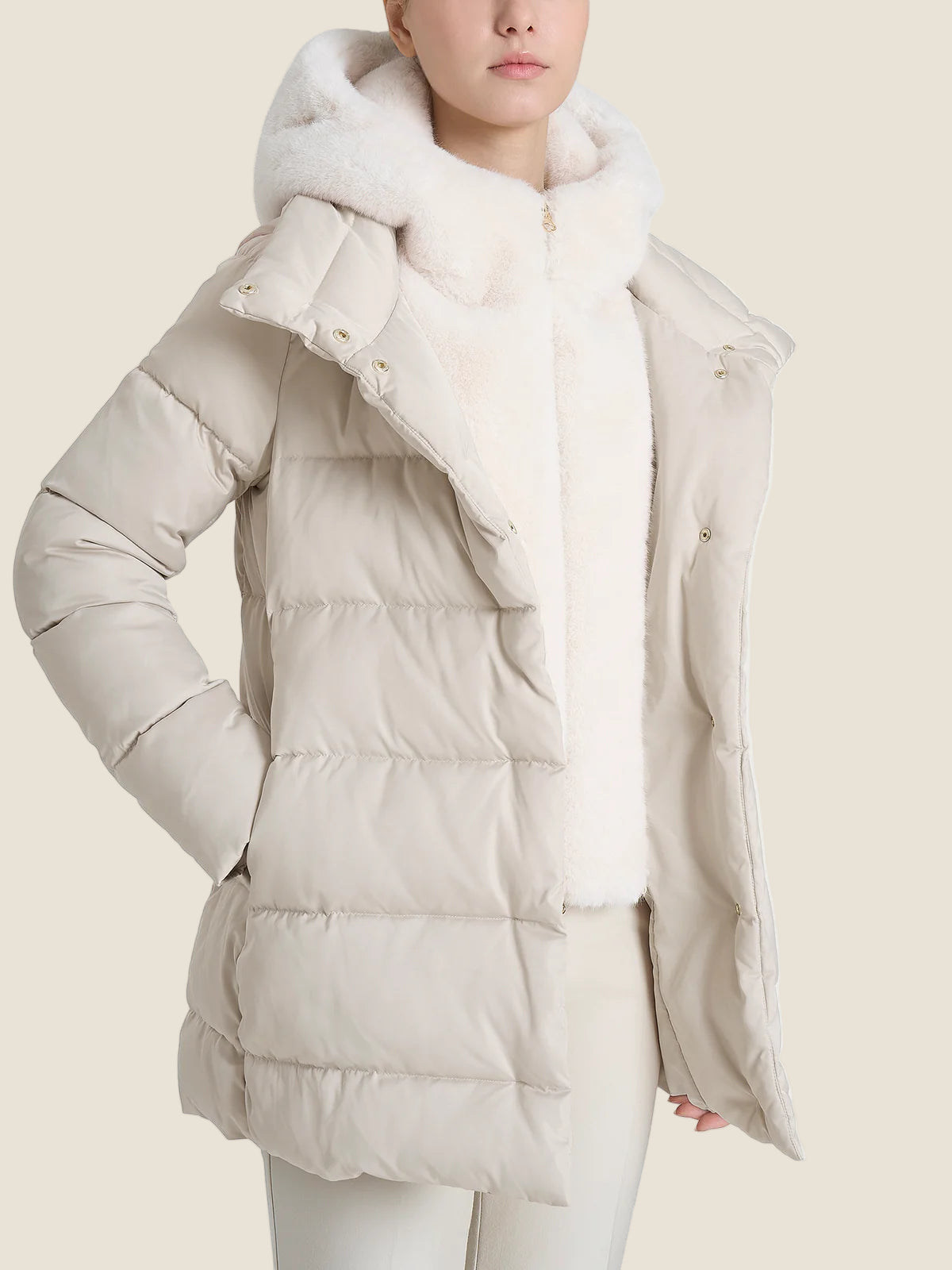 piumino donna in down jacket e vegan fur: caldo, soffice e 100% cruelty-free. Cappuccio removibile e stile elegante per ogni occasione.Prezzo normale