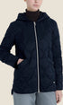 Piumino leggero da donna con manica lunga e cappuccio. Realizzato con trapuntatura Onion Quilt per un look moderno e distintivo, offre calore e comfort ideali per la mezza stagione.Prezzo normale
